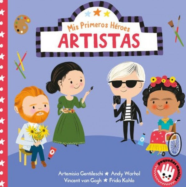 * La pintora barroca Artemisa Gentileschi , * el mayor exponente del pop art, Andy Warhol , * el virtuoso postimpresionista Vincent van Gogh , * y la artista surrealista Frida Kahlo . Empujando y tirando de las pestañas, los pequeños lectores podrán deslizar las escenas de este libro para descubrir las inspiradoras vidas y el increíble trabajo de estos cuatro de los más importantes artistas de nuestra historia. Los libros de cartón con el sello «Pequeñas manitas» están pensados específicamente para bebés a partir de 10 meses. Son la herramienta ideal para acercar a los bebés al mundo de los libros, así como para empezar a trabajar con ellos los primeros conceptos de aprendizaje temprano. Además, su formato está adaptado específicamente sus necesidades: tienen eltamaño adecuado para sus manitas y están impresos en materiales resistentes a su infinita energía.